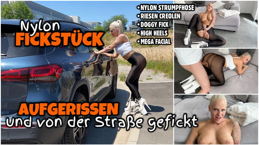 Geiles Nylon FICKSTÜCK wird von der Straße gefickt und mit Sperma vollgespritzt